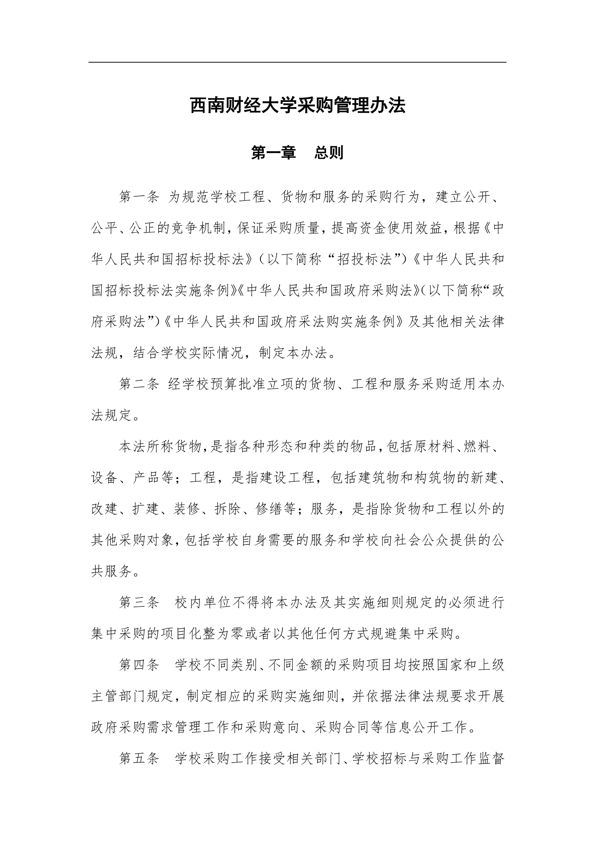 西南财经大学采购管理办法(西财大办〔2021〕31号)