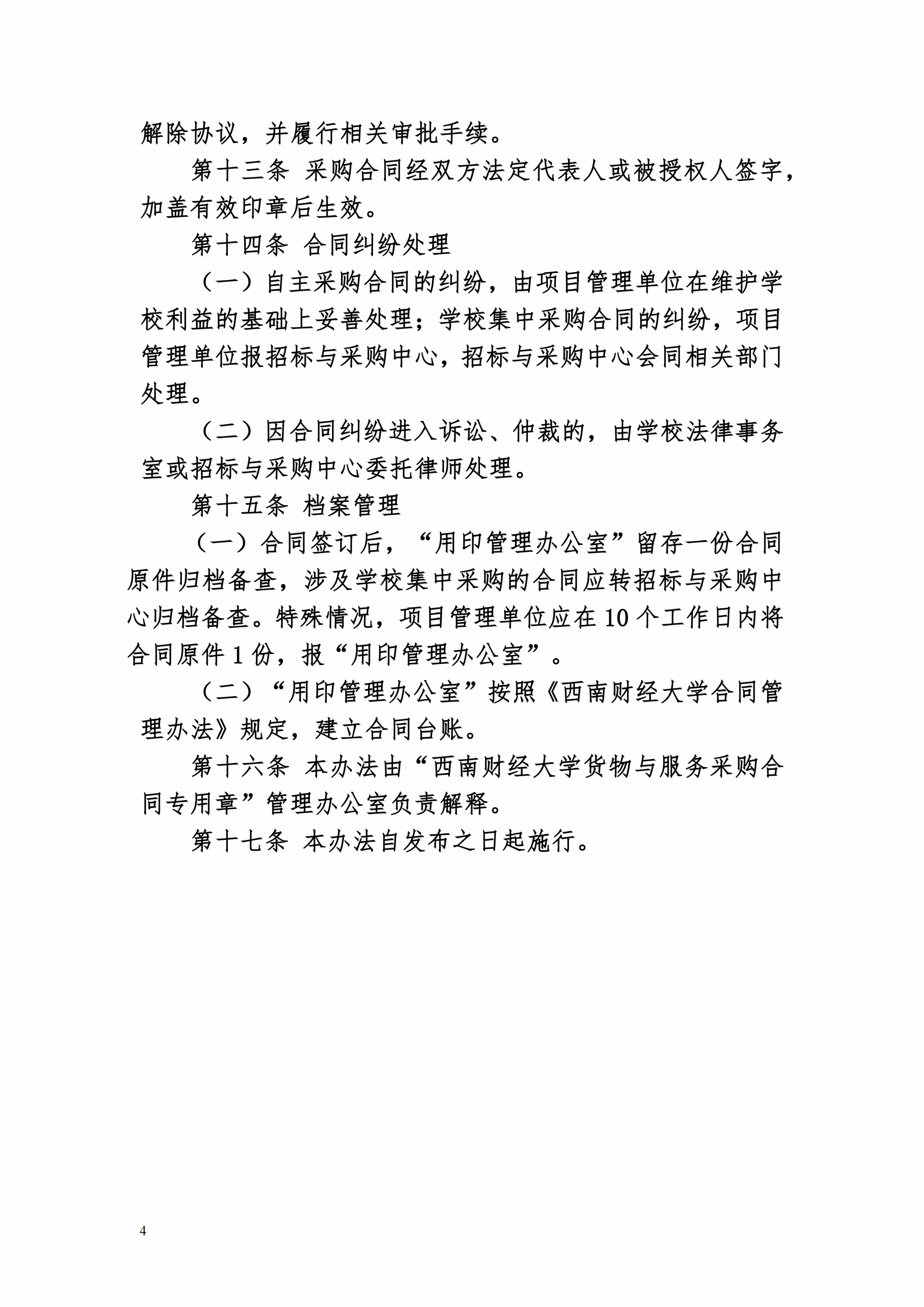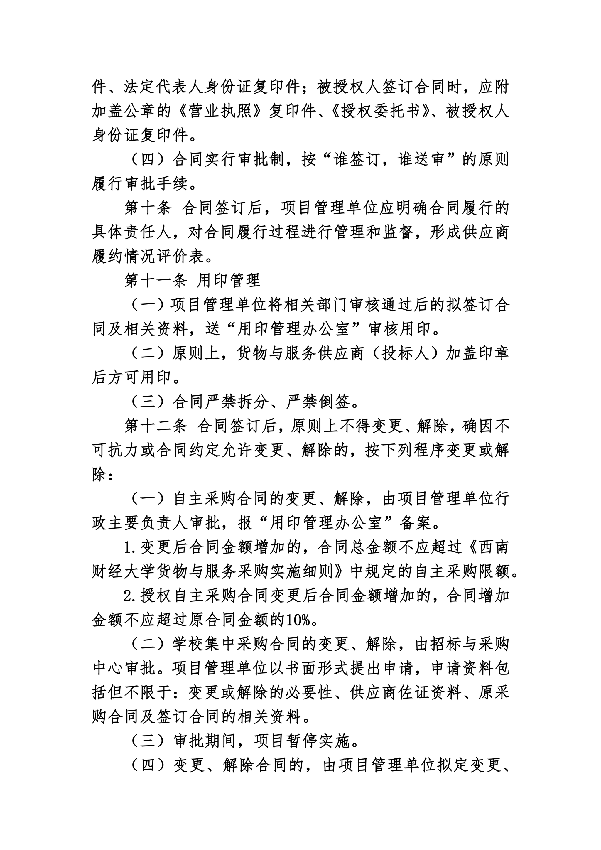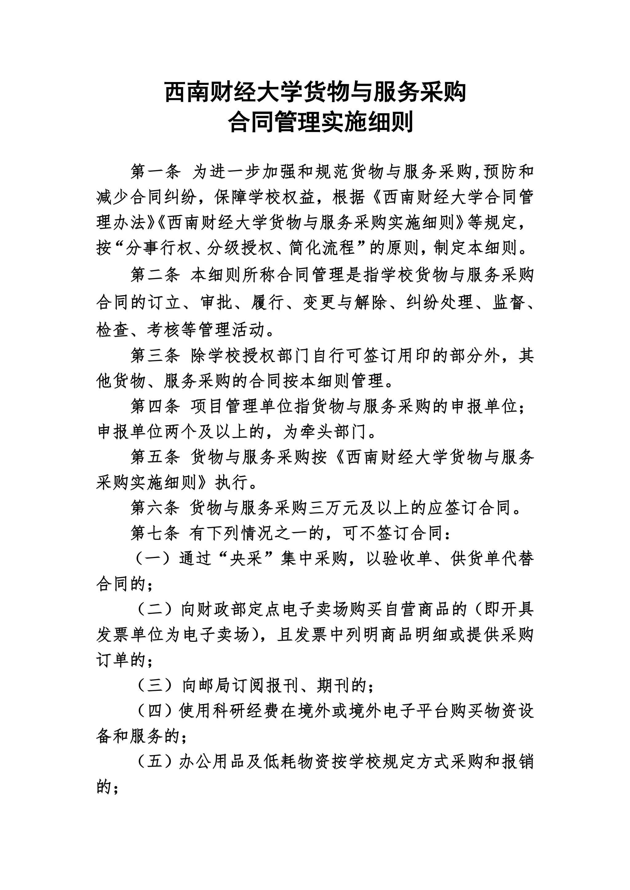 西南财经大学货物与服务采购合同管理实施细则(西财大办〔2021〕32号)